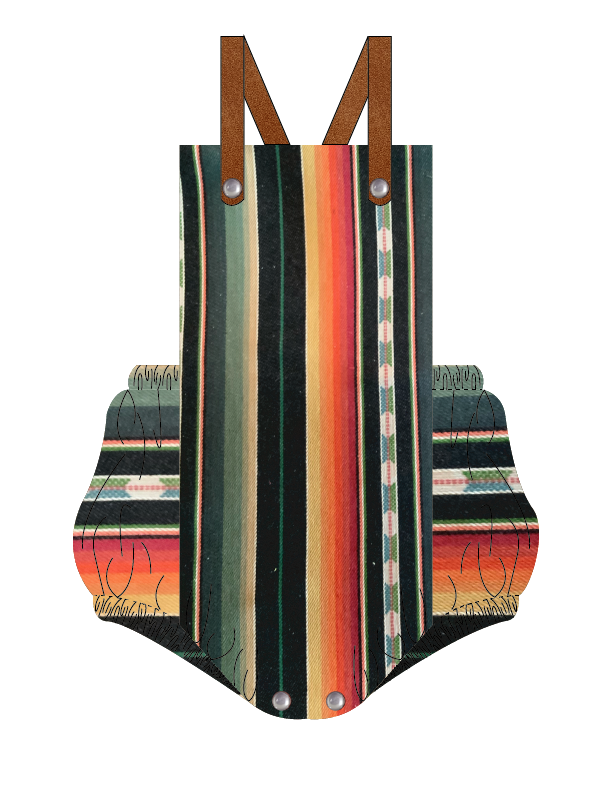 Comfortable and cute serape baby romper! Made of authentic Mexican Serape Fabric. Features leather straps, snap button closures for an easy diaper change and strap snaps for easy washing removal.